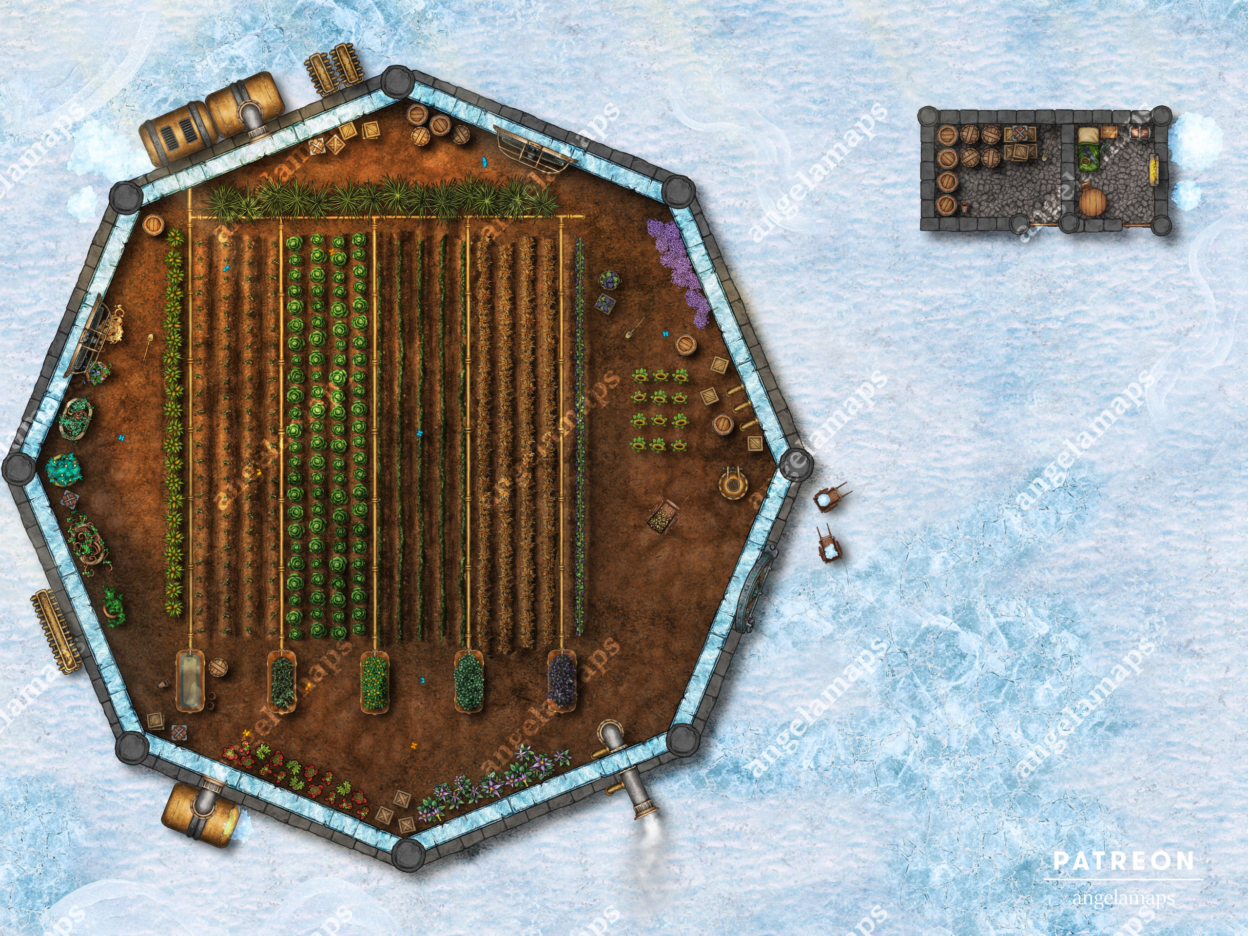 This greenhouse is used to grow crops in areas you might not otherwise be able to. I have underwater, arctic, desert and moon versions of this map. Perhaps in your game food is in high demand and your heroes are charged to protect it. Or maybe you are the ones stealing the food.